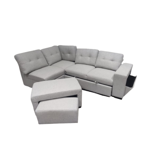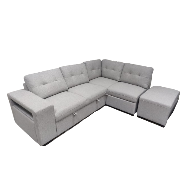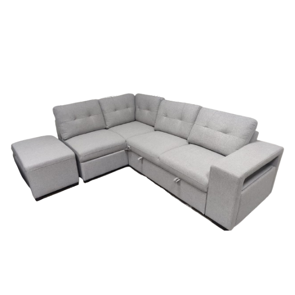 Divano mod. Marcella angolare con carrello, contenitore, porta riviste, tavolino